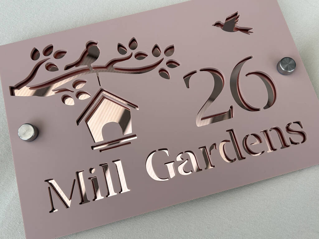 Personalised Bird And Birdbox Design House Acrylic Number Sign