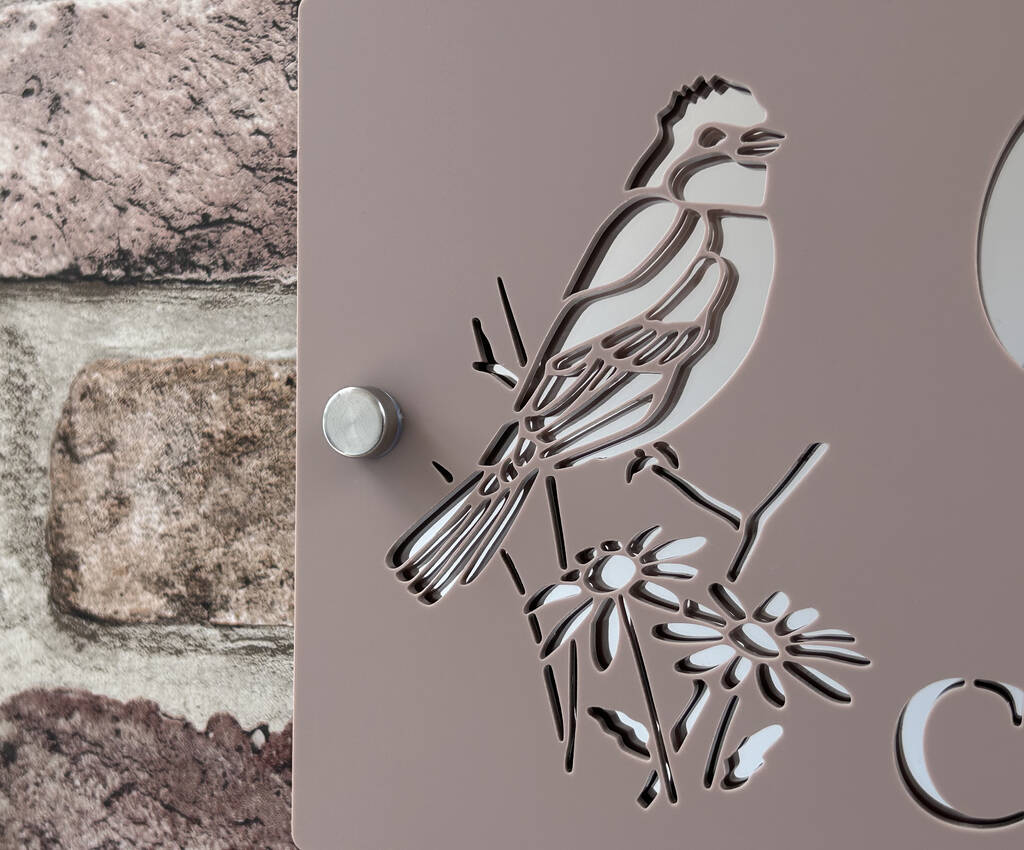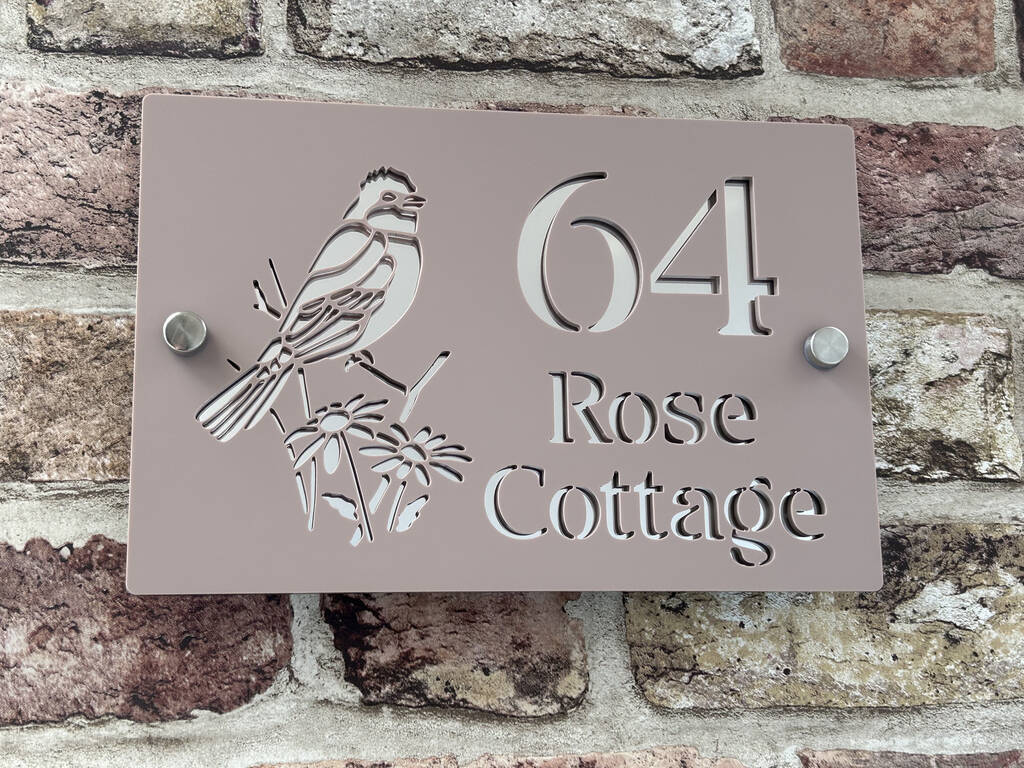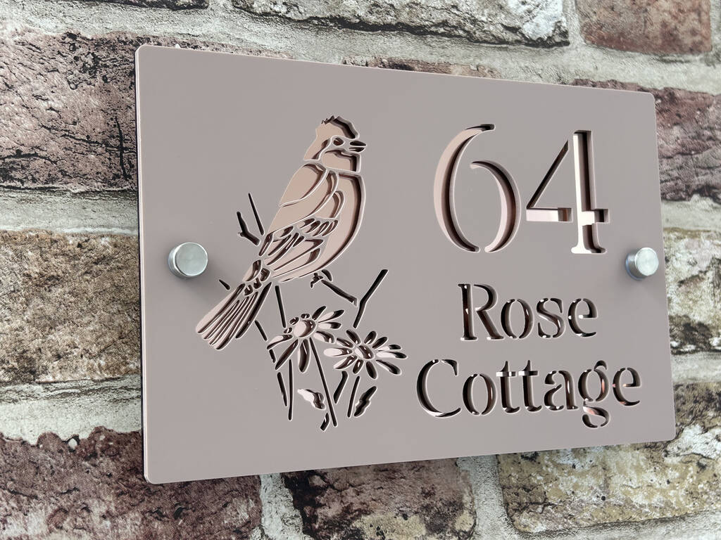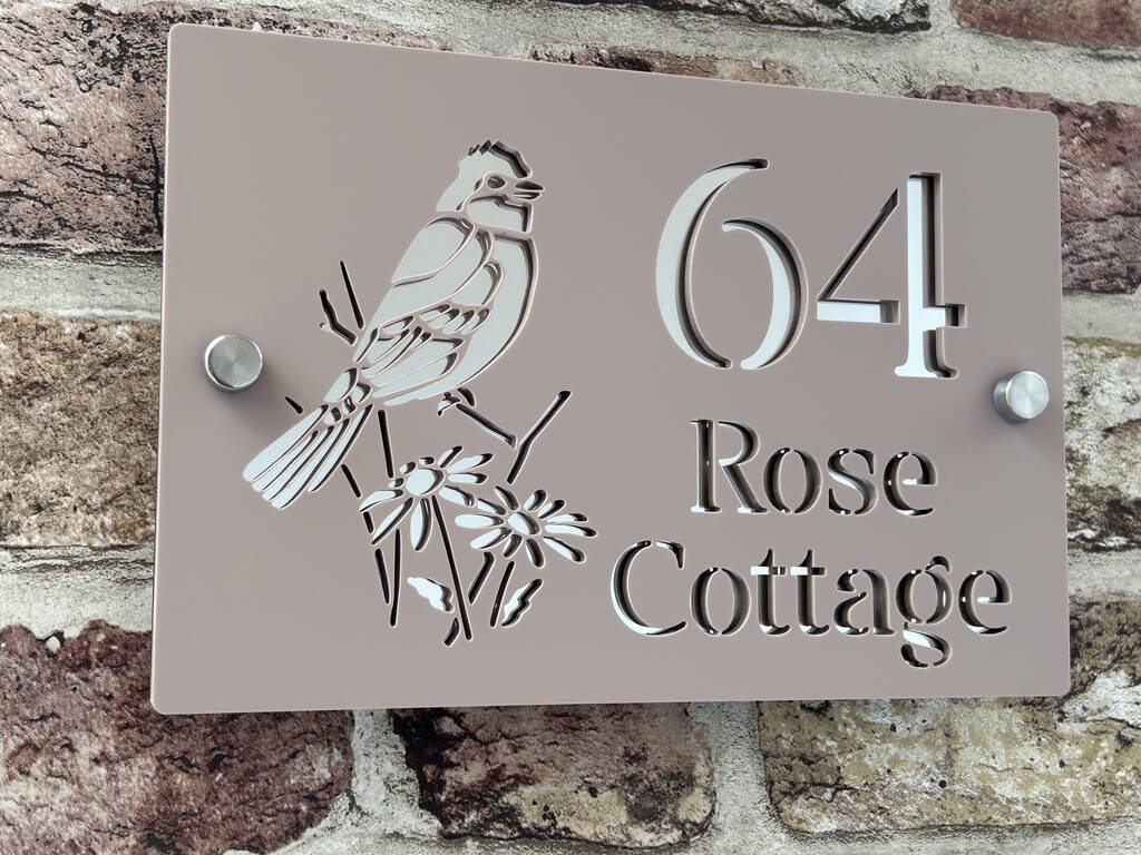 Personalised Bird On Flower Design House Acrylic Number Sign