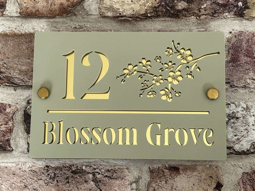 Personalised Blossom Branch Design House Acrylic Number Sign