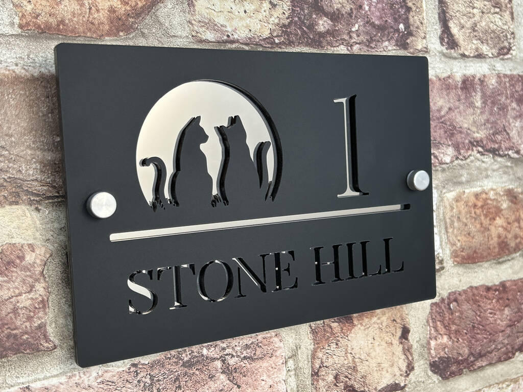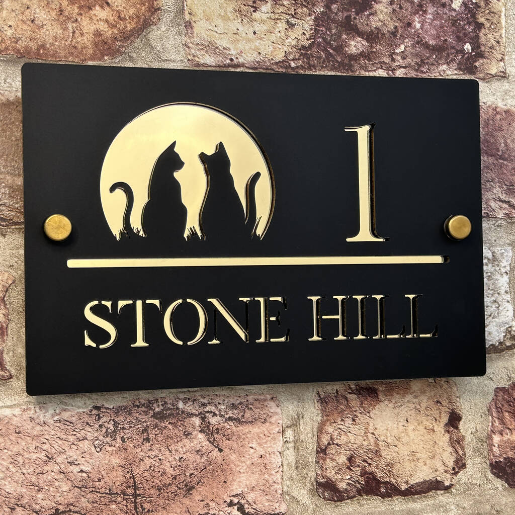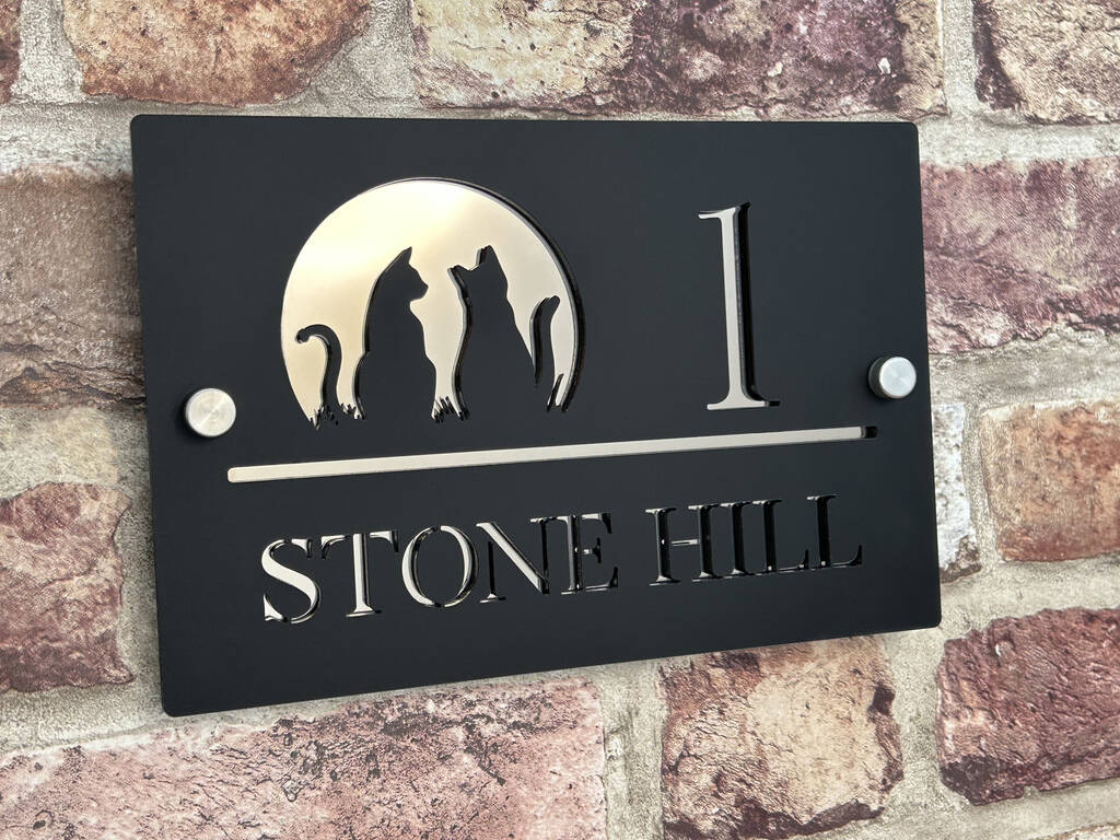 Personalised Cat Design House Acrylic Number Sign