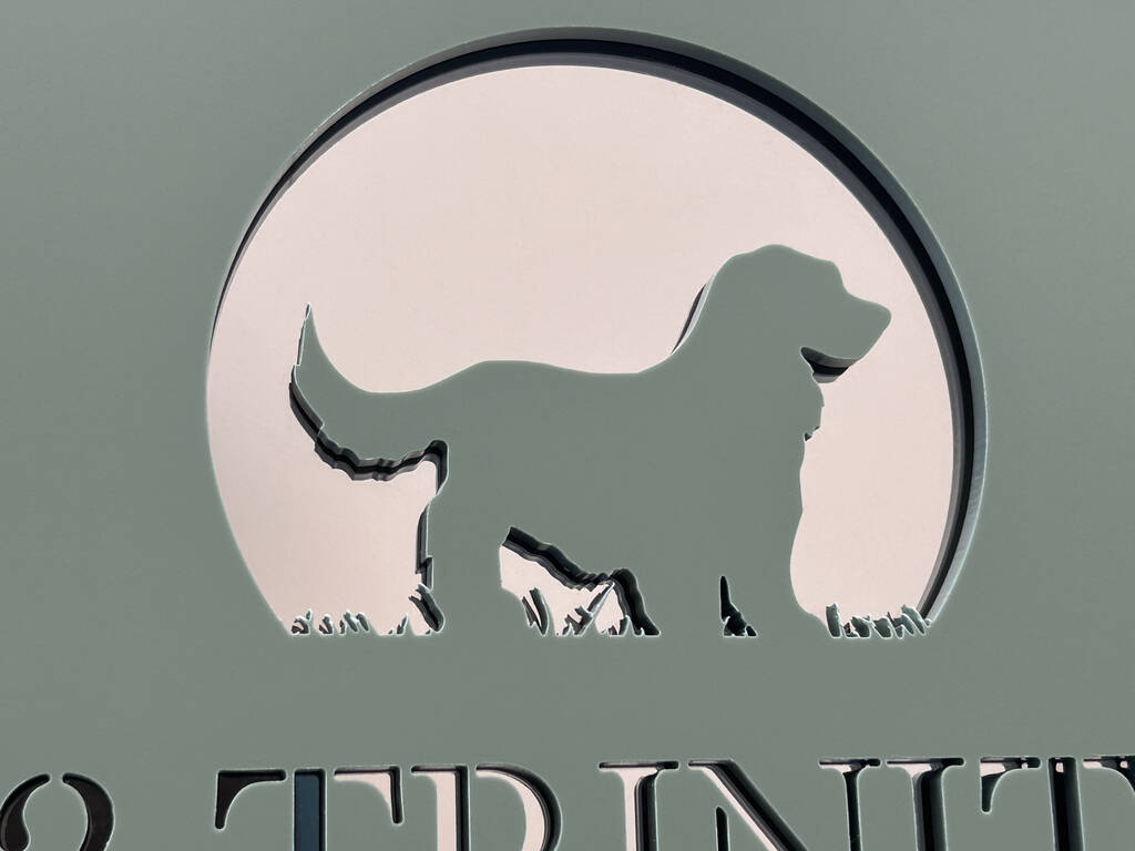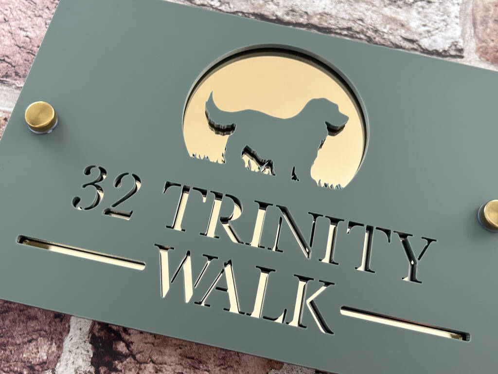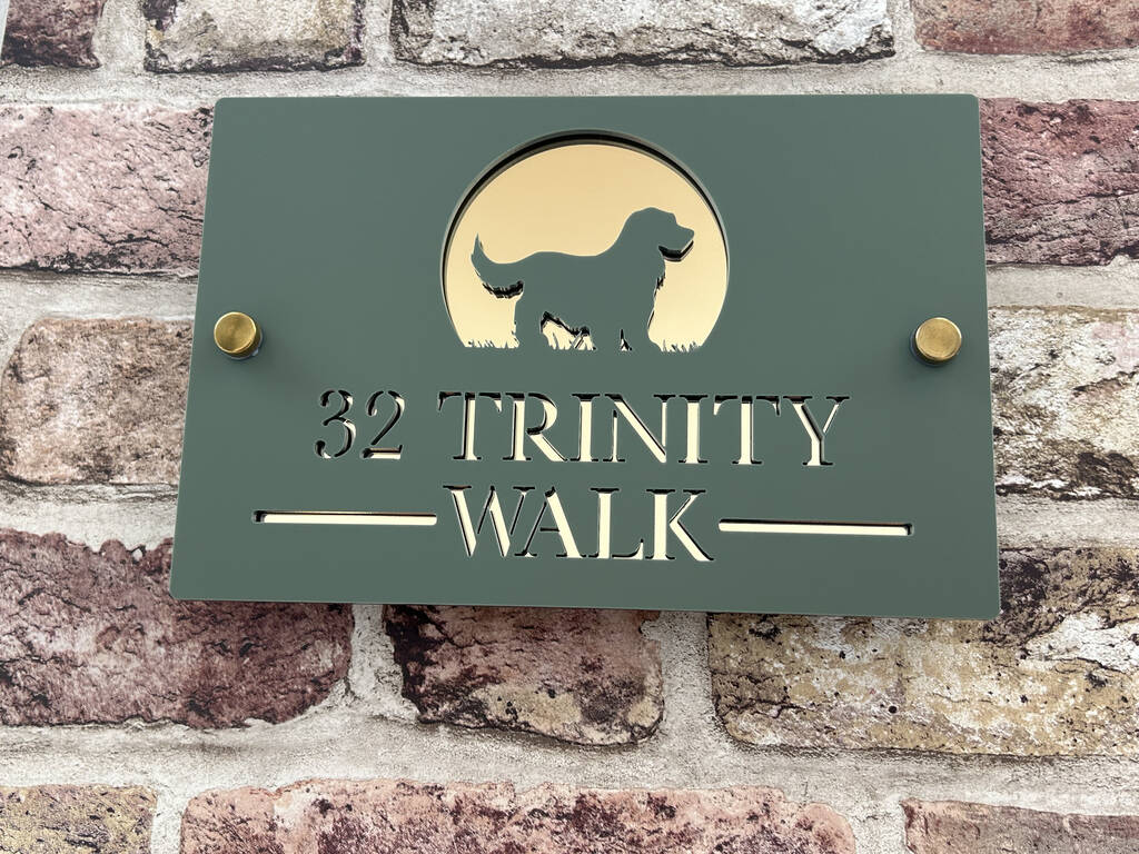 Personalised Dog In Arch Design House Acrylic Number Sign