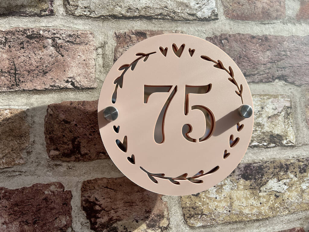 Personalised Foliage And Heart House Acrylic Number Round Sign