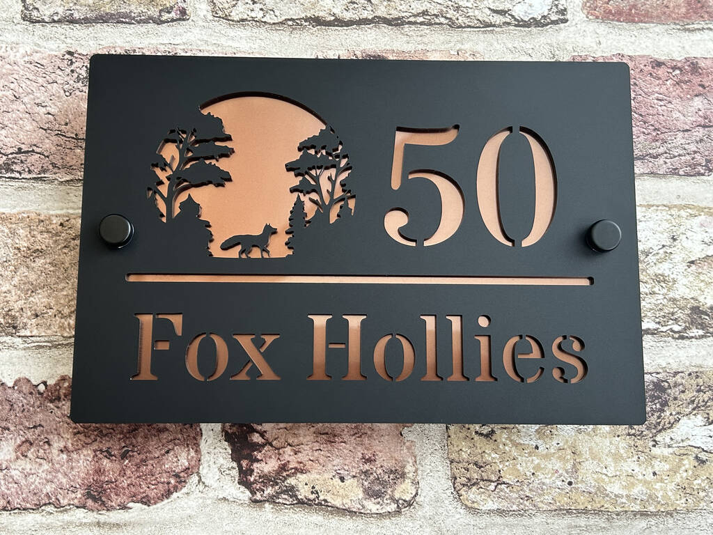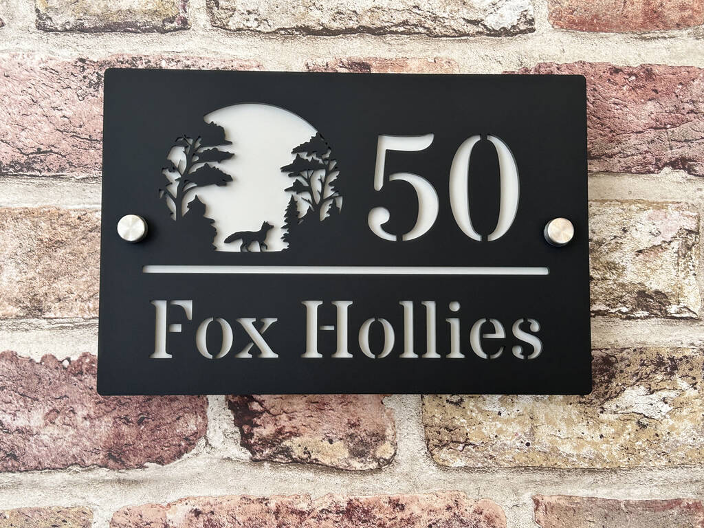 Personalised Fox In Forest Design House Acrylic Number Sign