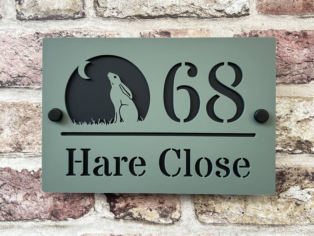 Personalised Hare Design House Acrylic Number Sign, 1 of 8