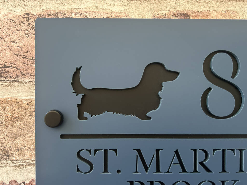 Personalised Long Haired Dachshund Design House Acrylic Number Sign