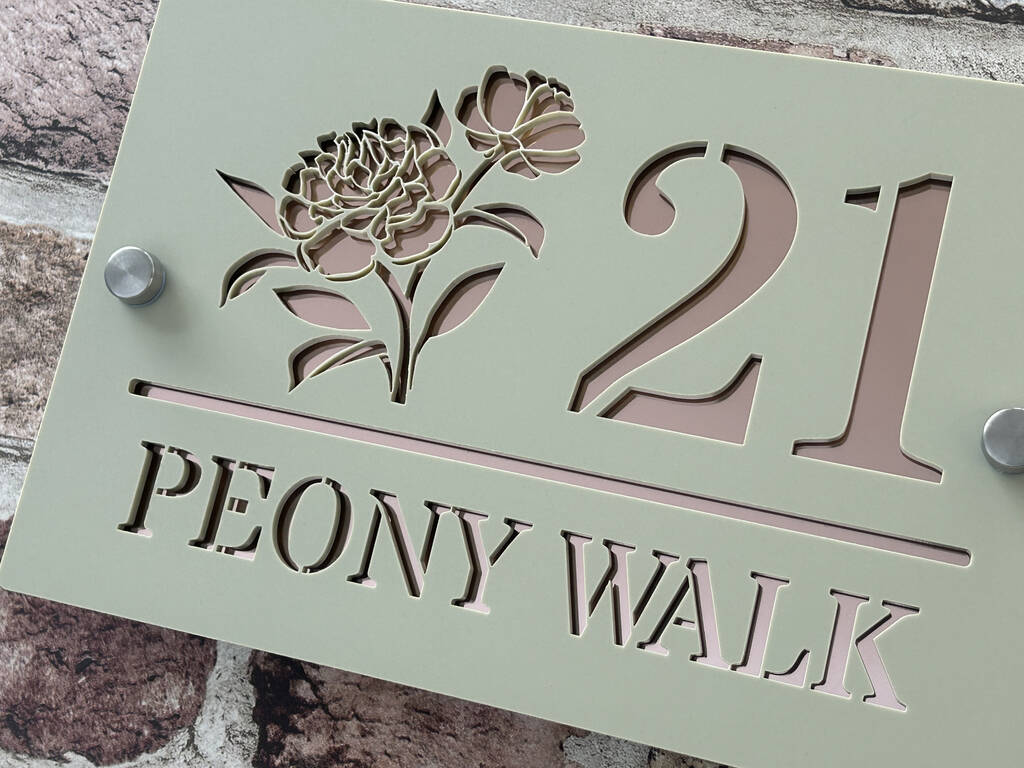 Personalised Peony Design House Acrylic Number Sign, 1 of 6