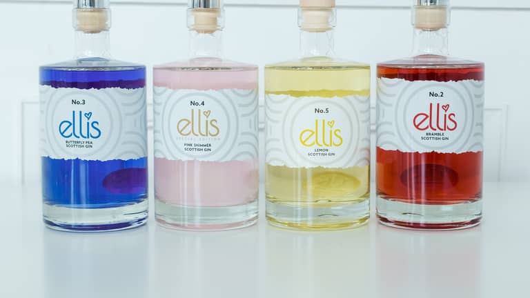 Ellis Gin is a range of Small Batch Premium gins distilled in Glasgow. The aim is to bring fun and colour to the gin market.