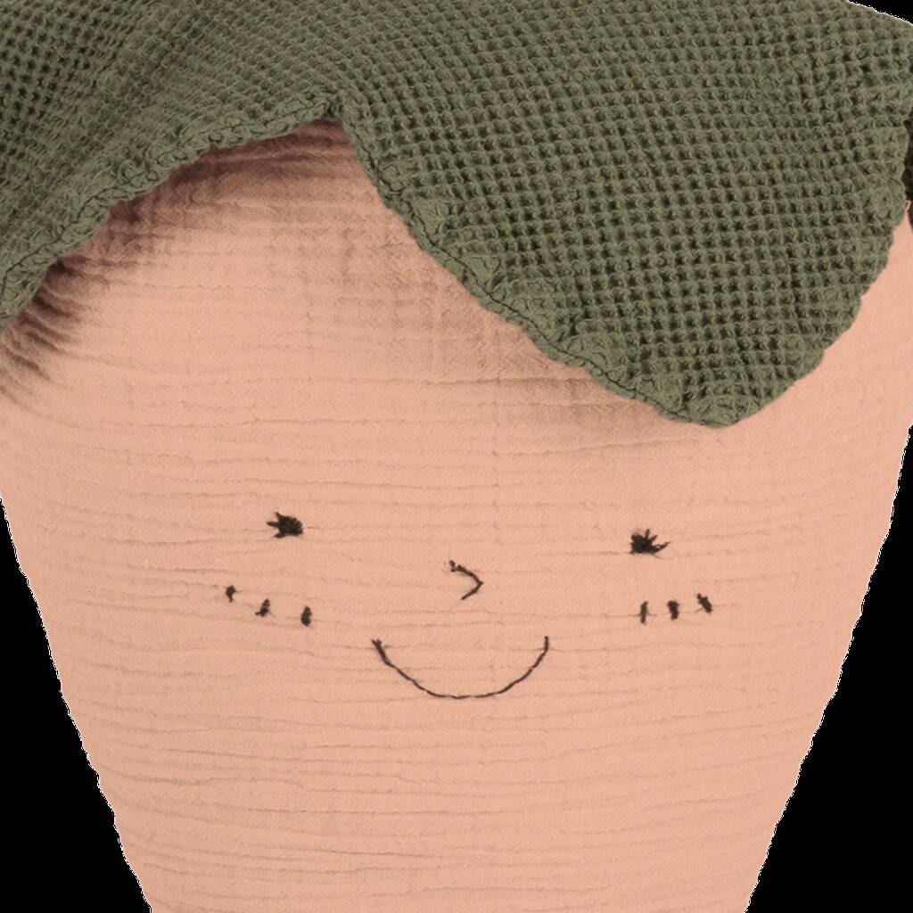 The embroidered strawberry cushion is the vitamin-packed accessory to add a touch of punch to your children's bedroom. Ultra-soft with its double texture of organic cotton gauze and washed honeycomb, it's the cushion to munch on. Shaped cushions in children's bedrooms go far beyond simple decoration. They play a key role in a child's development, offering both physical and emotional support while stimulating imagination and learning. Double texture: the elegance of honeycomb combined with the softness of organic cotton double gauze—embroidered face