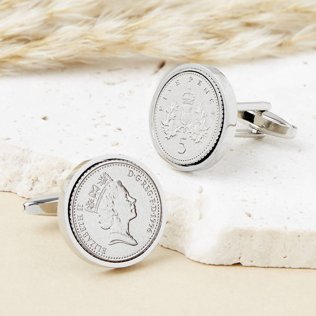 An iconic gift to celebrate their big 30th birthday, celebrate in style with our unique pair of five pence cufflinks featuring a five pence coin minted in their year of birth 1996.
