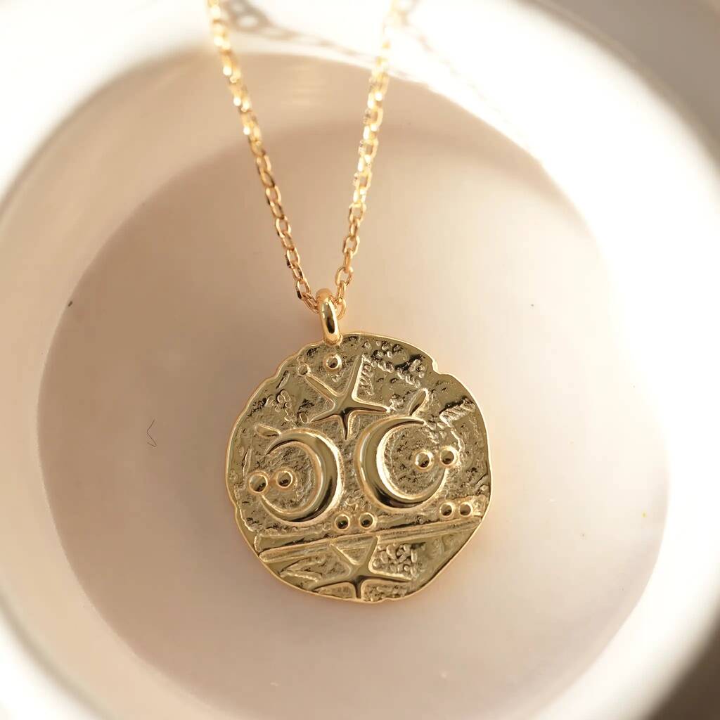 Add a touch of celestial charm to your jewellery collection with our gold Moon and Stars Disc Necklace.