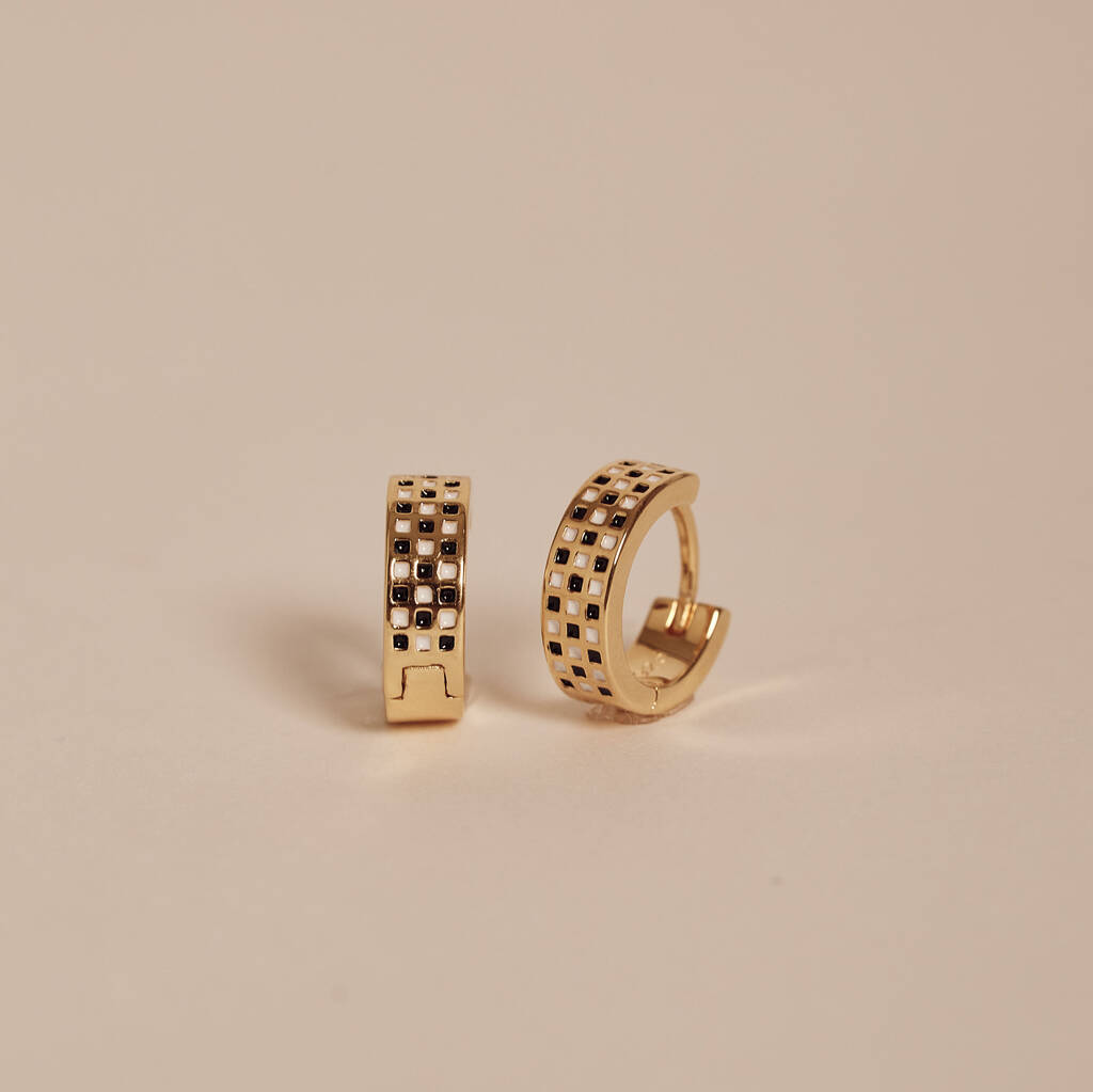 Add effortless style to your jewellery collection with our Checkerboard Gold Huggie Hoops.