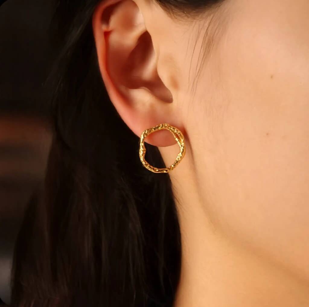 Gold Organic Branch Loop Earrings