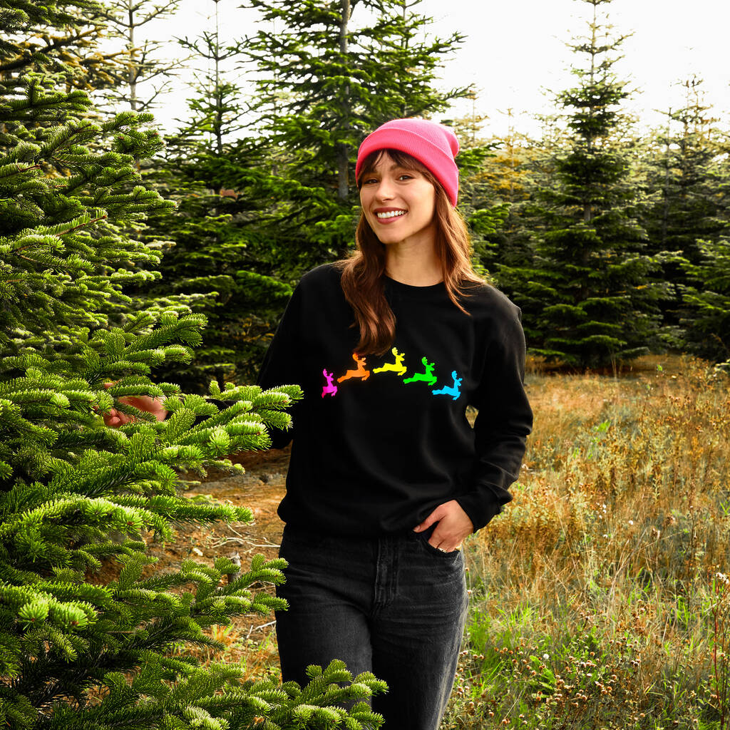 Neon Rainbow Reindeers Christmas Sweatshirt Jumper
