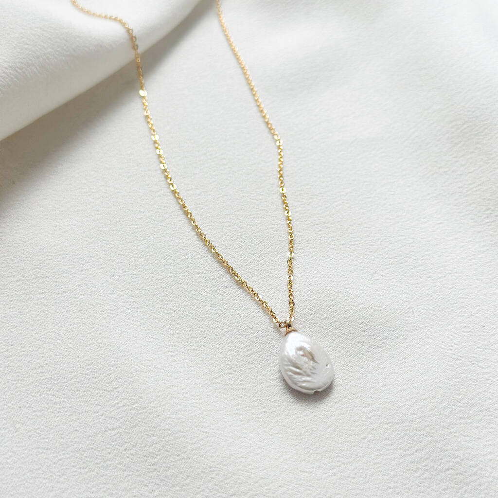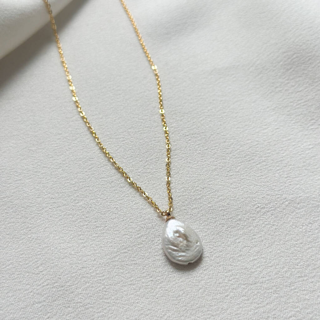 Freshwater Teardrop Pearl 18k Gold Necklace