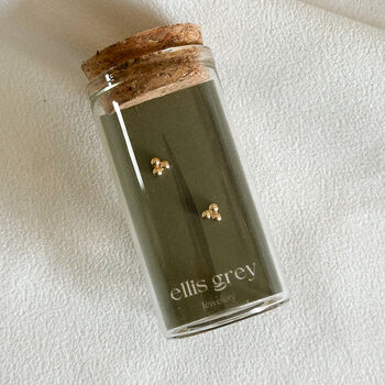Glass Vial 18k Gold Plated Triple Ball Stud Earrings