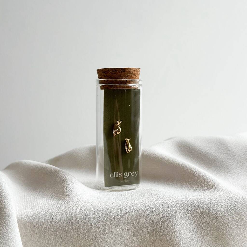 Glass Vial 18k Gold Snail Stud Earrings