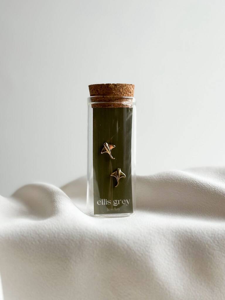 Glass Vial 18k Gold Stingray Stud Earrings