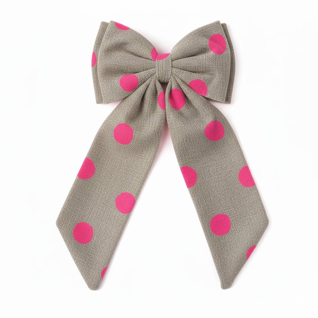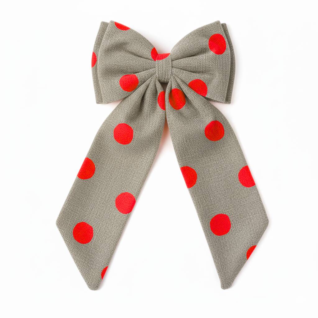Sustainable Lrg Linen Polka Dot Bow Hanging Christmas Decoration