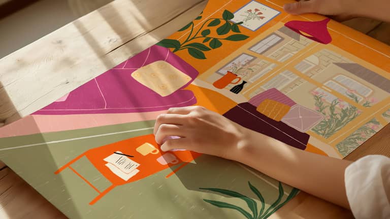 Recently, I've found a new passion in drawing bold, bright interior scenes—a natural extension of my long-standing love for interior design and homemaking. 'The Interior Series' is an ongoing project that celebrates the small pleasures and everyday experience of home. Much of my work comes from commissions, and I feel so lucky to be able to capture your unique spaces.