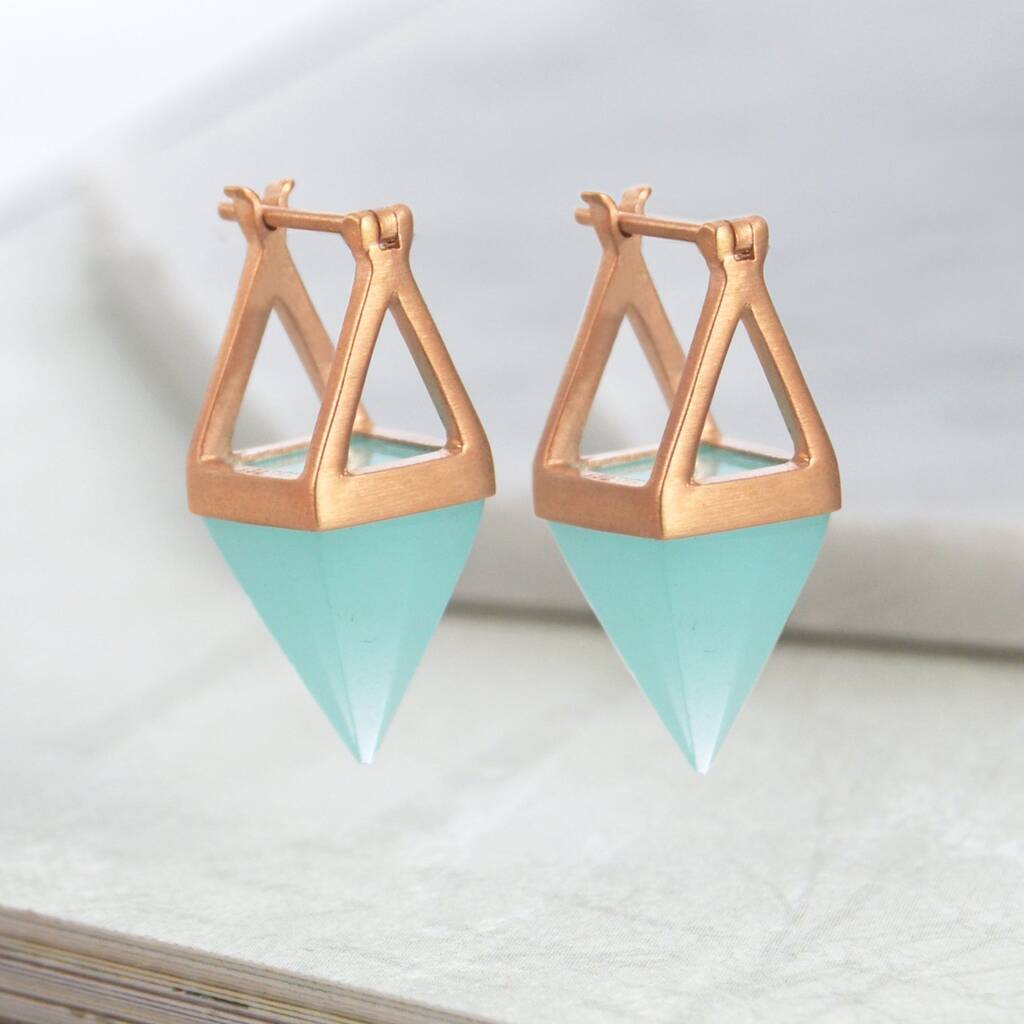 Rose Quartz Pyramid Gold Plated Sterling Silver Earrings