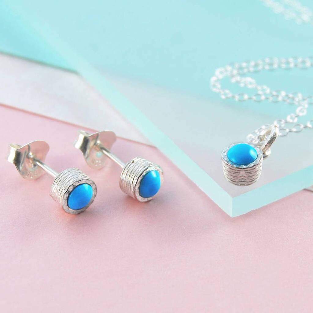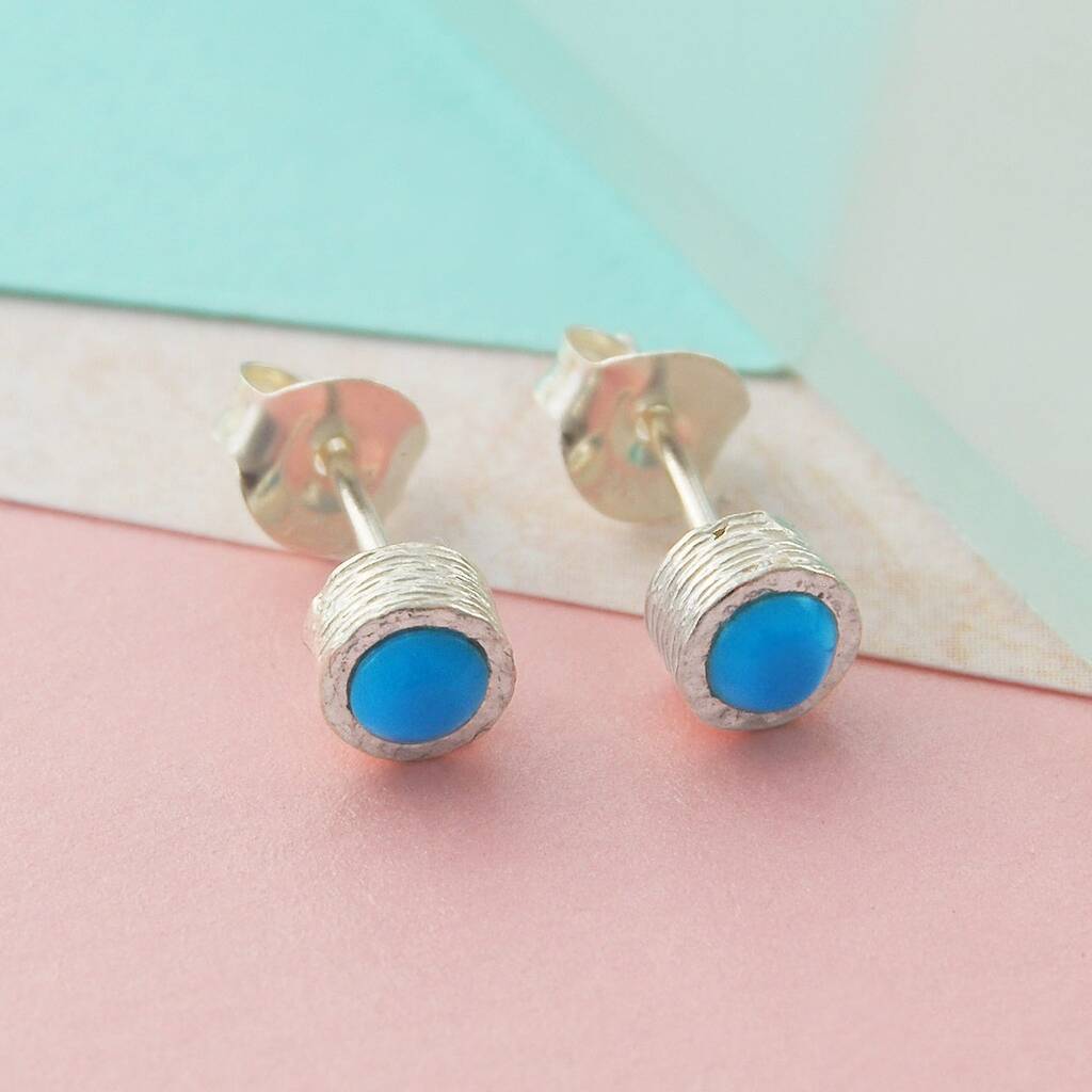 Turquoise Sterling Silver December Birthstone Stud Earrings