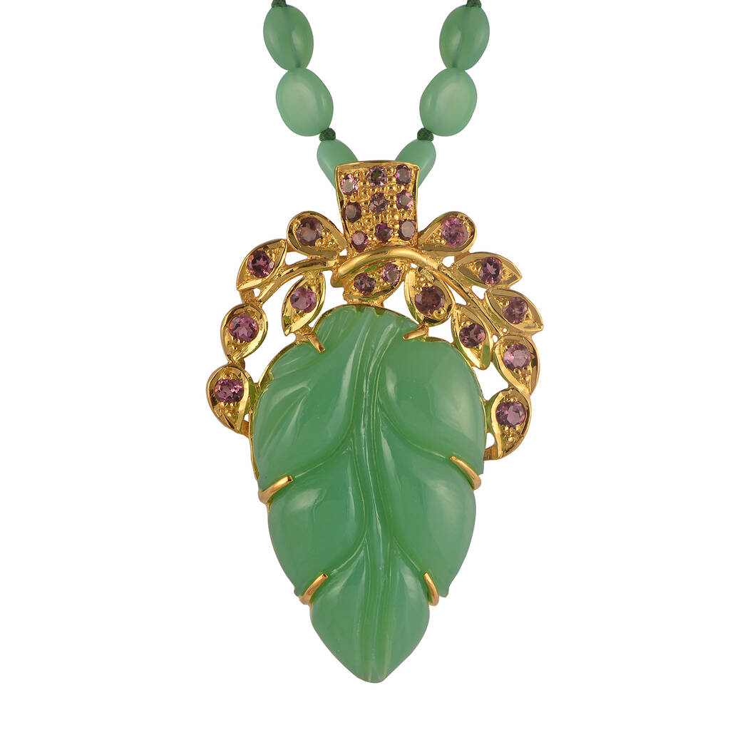 Chrysoprase Tourmaline Gold Plate Leaf Pendant