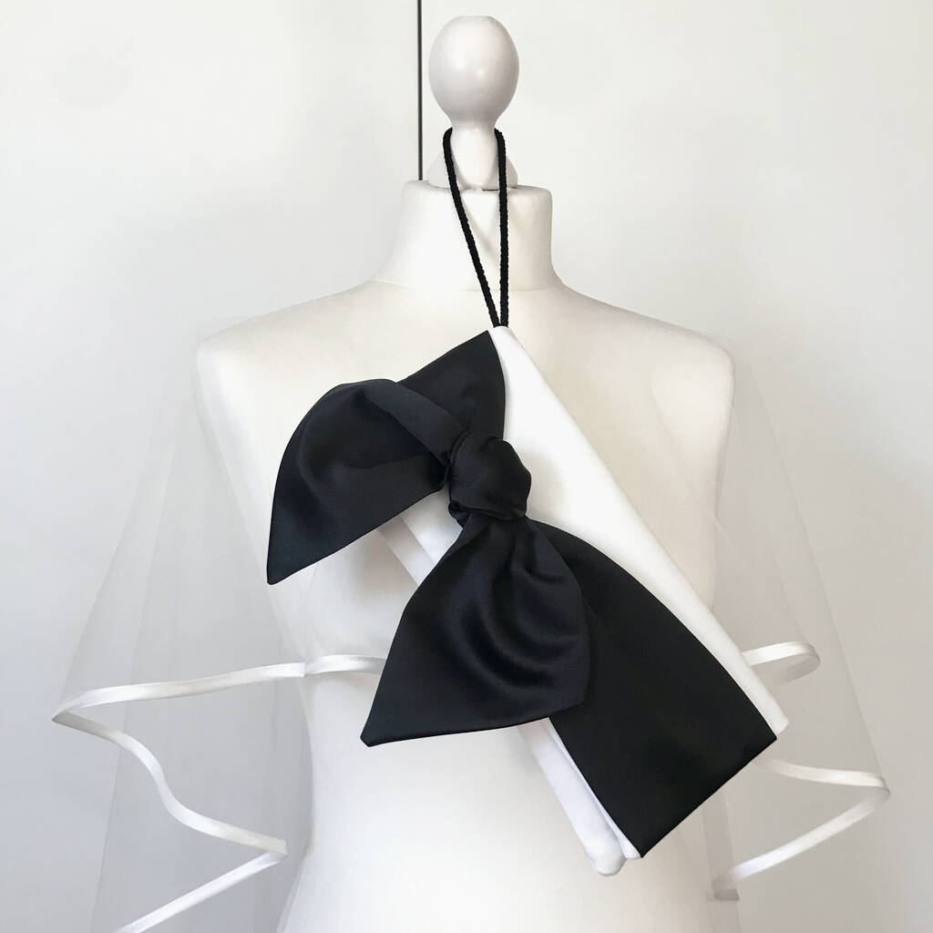 Ivory And Black Satin Bow Bridal Clutch Handbag Hope