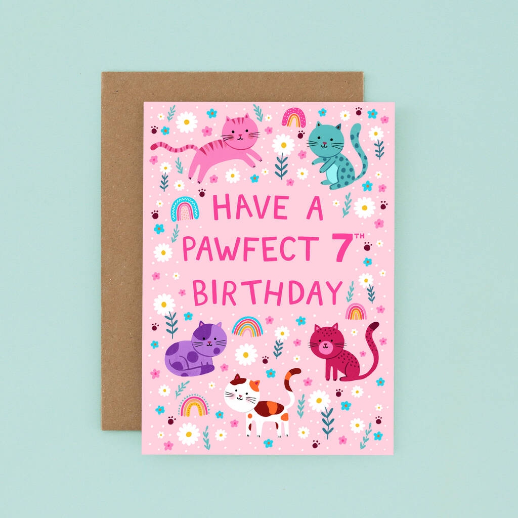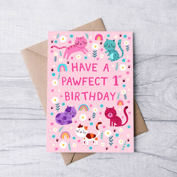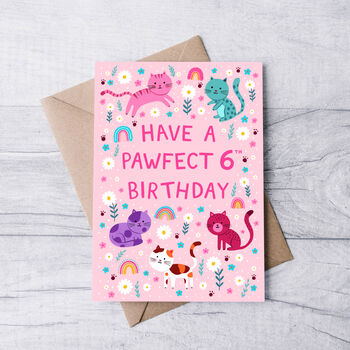 Any Age Cat Birthday Card, Girls Age Birthday Card