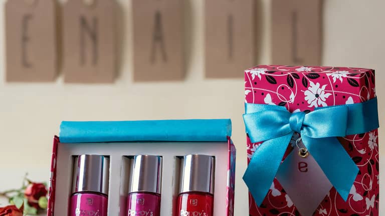 Enail is a unique, new, personalised nail polish concept. The three nail polishes in the gift set are personalised with a silver foil printed label which is written by you. They are filled with the colours you choose and packed in a beautifully decorated gift box selected by you. Suitable for girls aged 9 to 90!