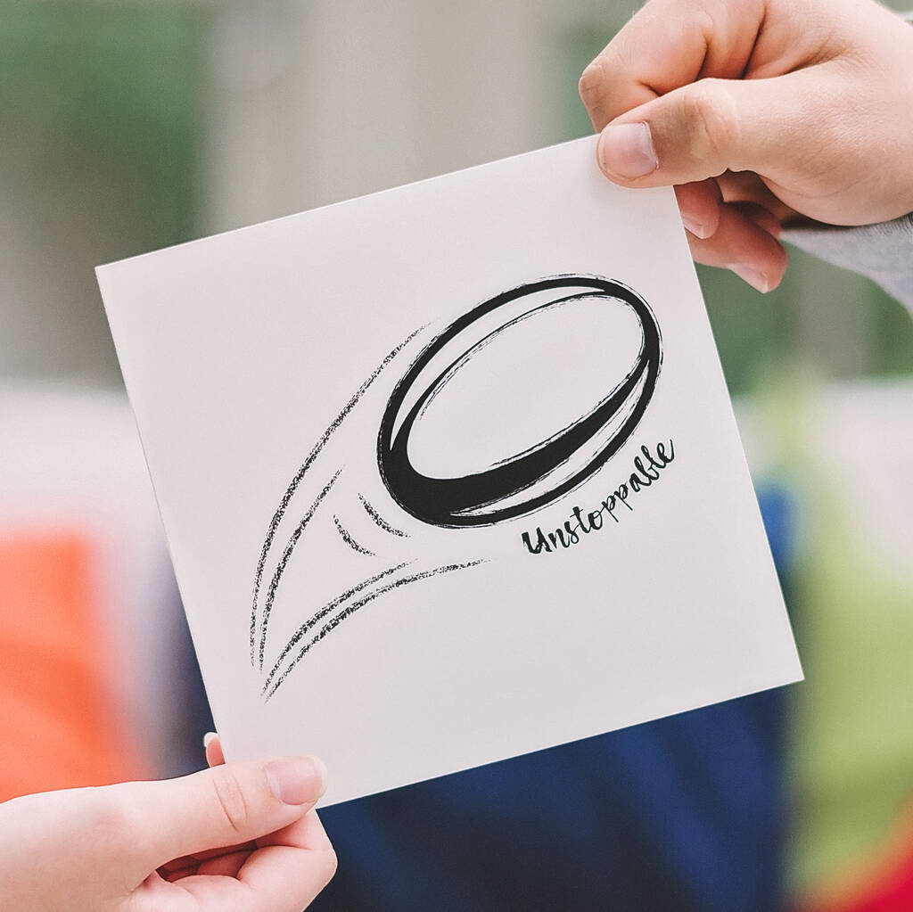 An ideal birthday, good luck or congratulations card for rugby-mad tweens and teens.