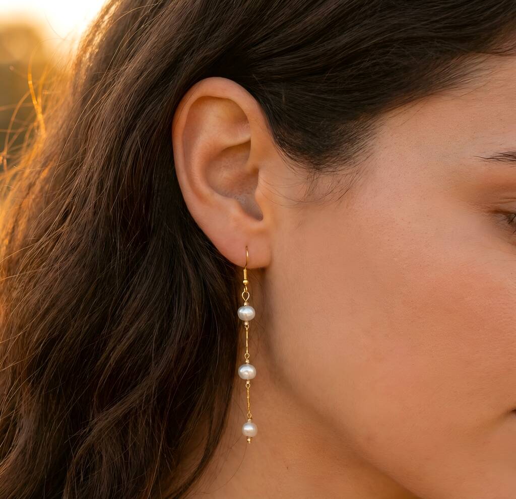 Three Pearl Drop Gold Plated Tarnish Free Earrings
