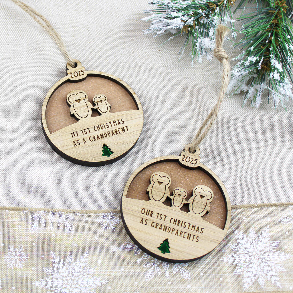 This personalised First Christmas As Grandparents Decoration will make a fantastic Christmas gift for all of the new Grandma's and Grandad's!