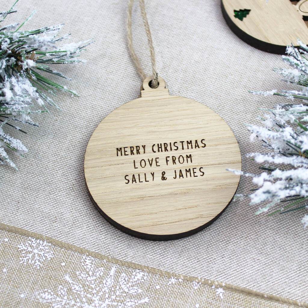 Handmade from wood with natural jute twine, this personalised decoration has a sweet rustic charm that will look wonderful on any Christmas tree.