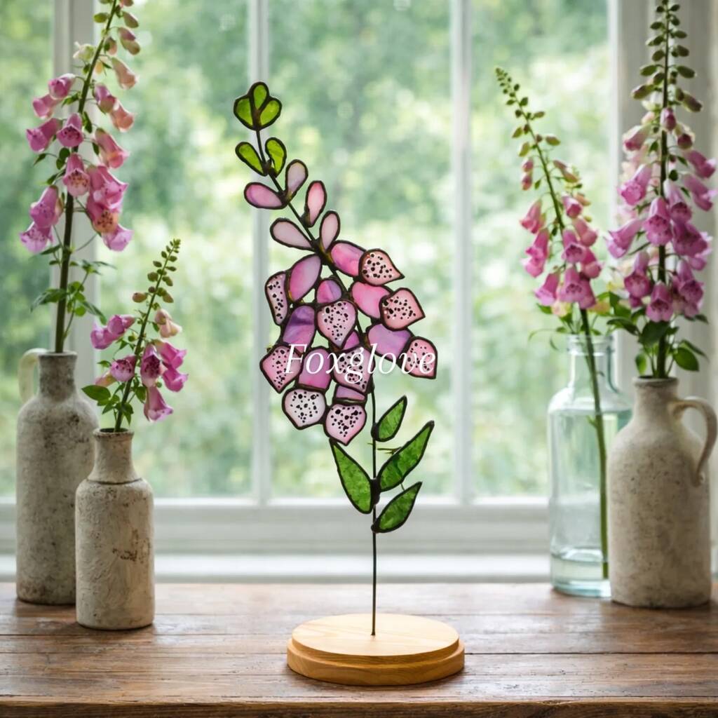 Purple And Pink Foxglove Flower Stem Faux Glass Flowers