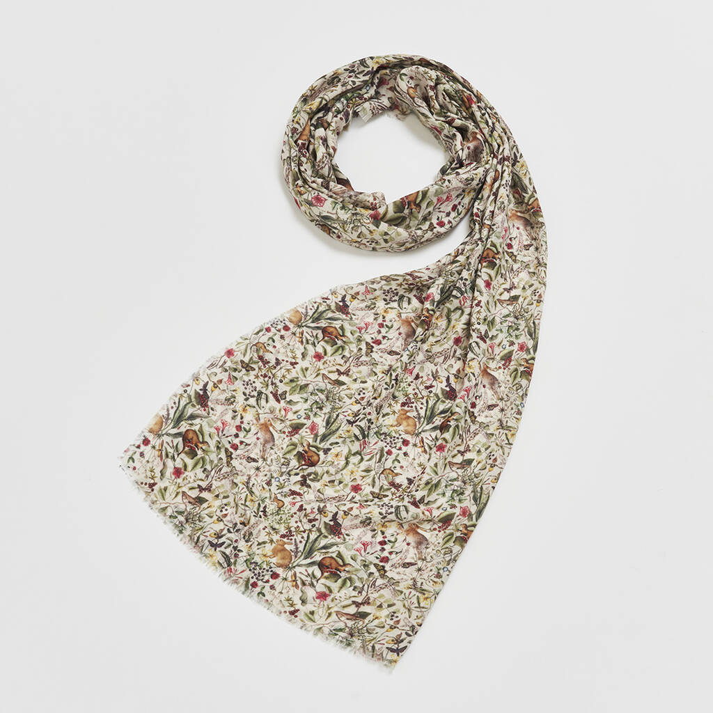 Cream Garden Floral Lightweight Long Scarf