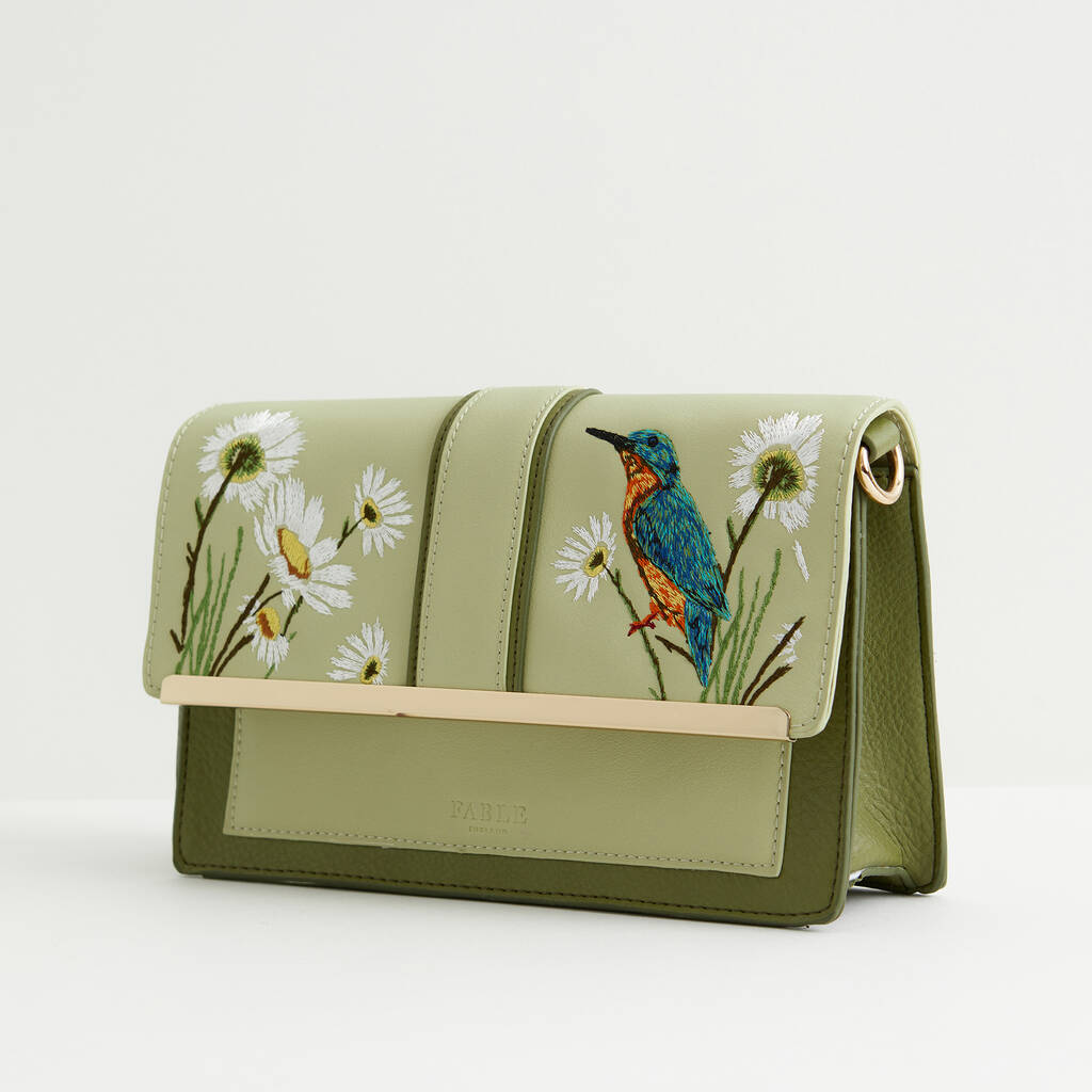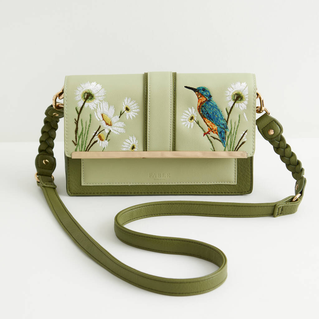 Embroidered Kingfisher Cross Body Bag
