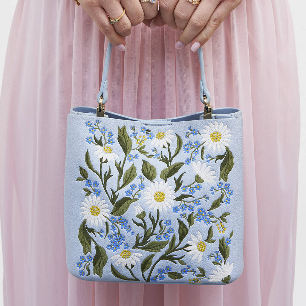Emma Forget Me Not Blue Embroidered Bucket Bag