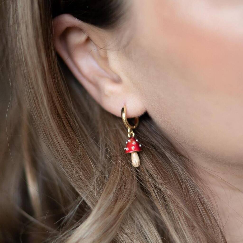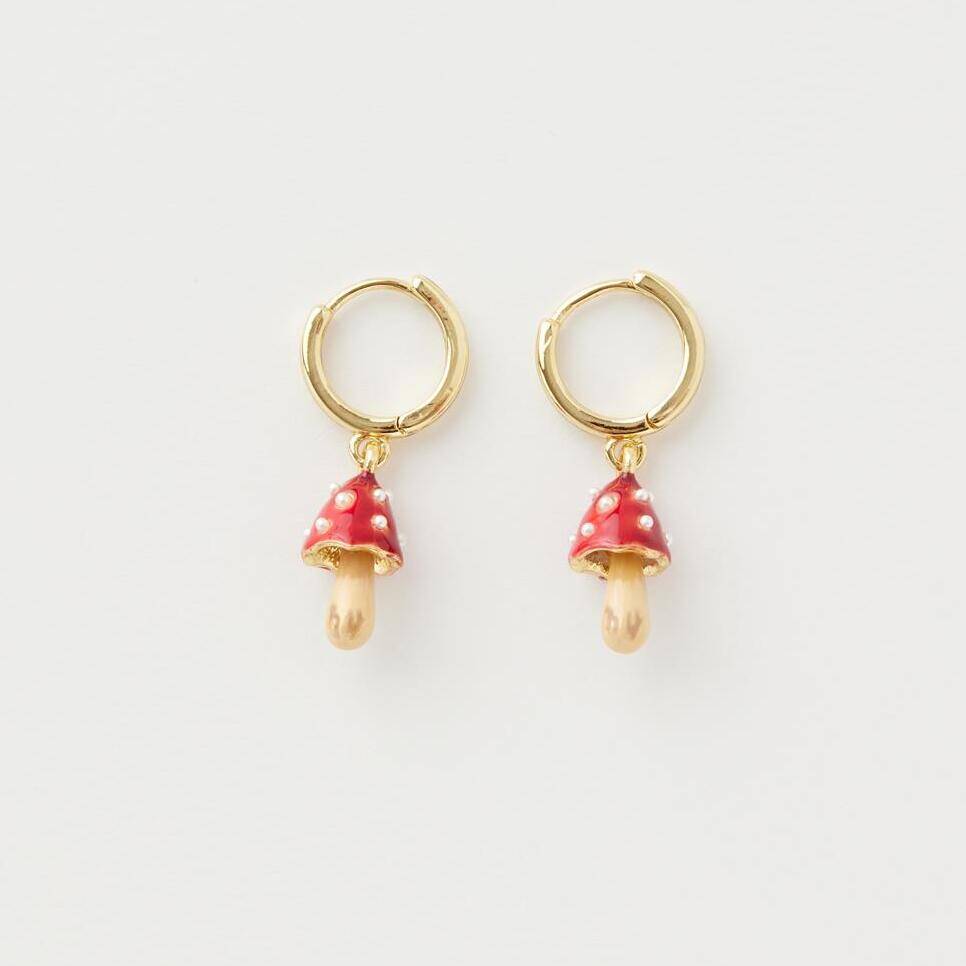 Fable Enamel Mushroom Huggie Earrings