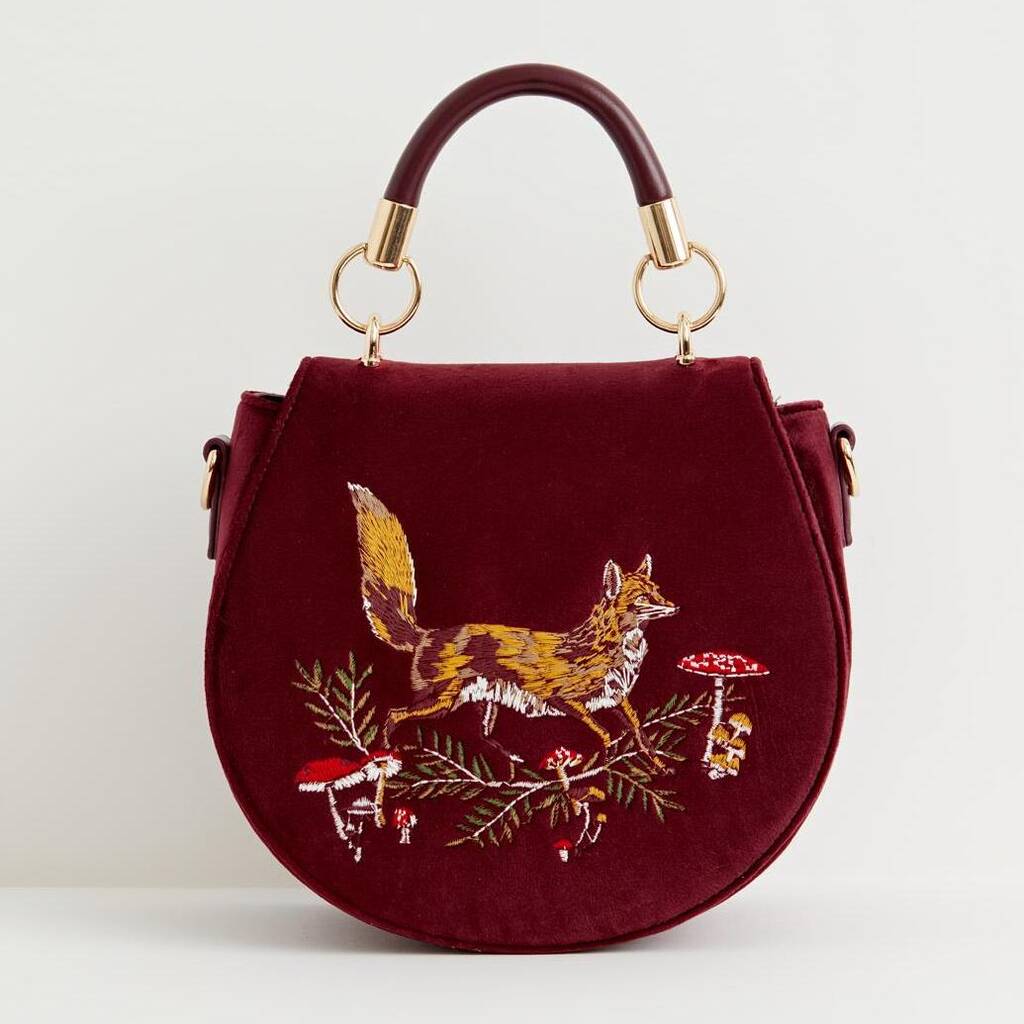 Fable Fox And Mushroom Embroidered Saddle Bag