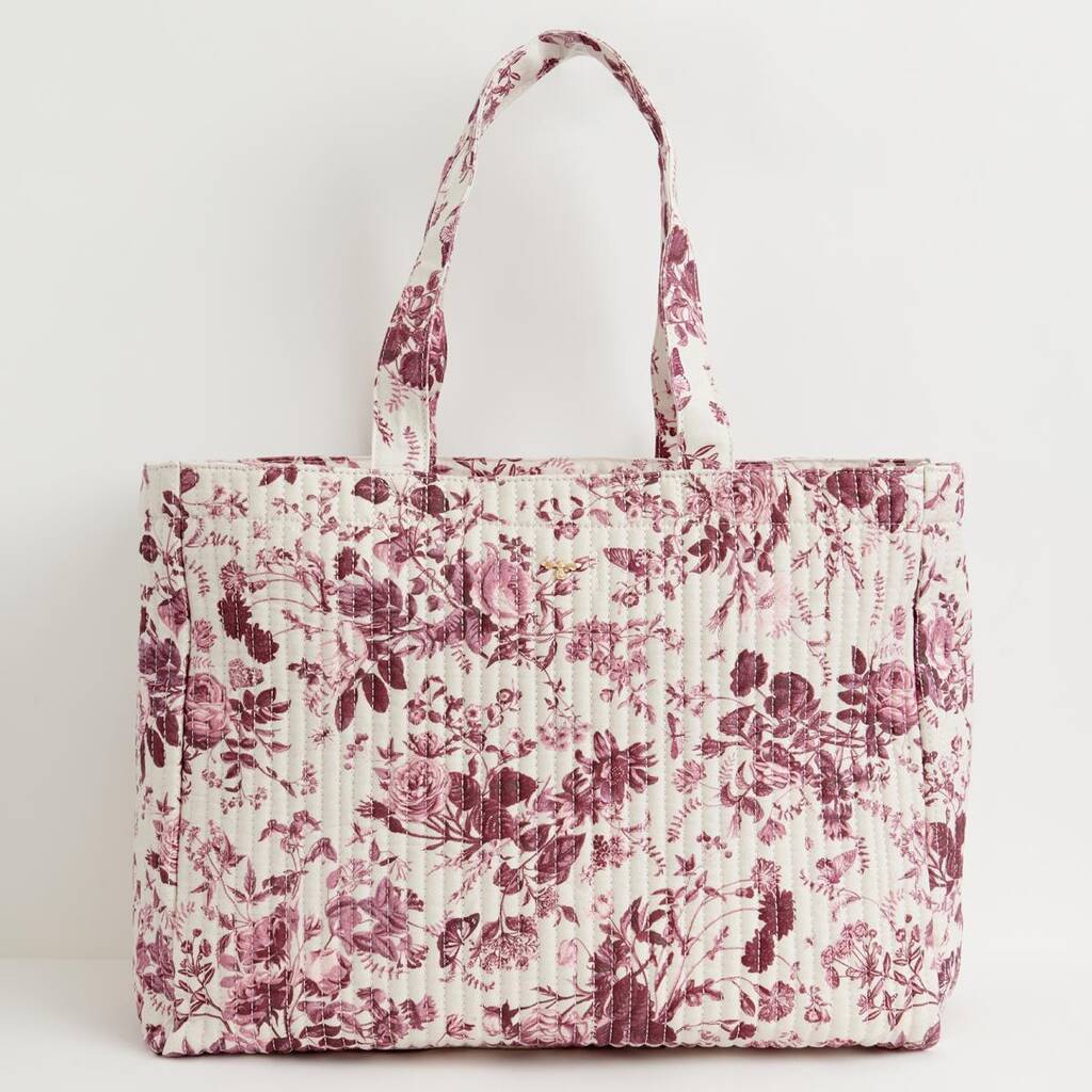 Unwind in nature's embrace with the Rambling Rose Tote, a spacious bag designed for carrying your world with you. Crafted from soft quilted cotton and featuring the delightful Rambling Rose pattern, where delicate rosebuds entwine with lush foliage, creating a picturesque scene. This tote is perfect for a countryside retreat or a busy day at work. Its ample space makes it an ideal companion for carrying a few large essentials and is poplular with new mums for stashing all of babys playdate essentials.