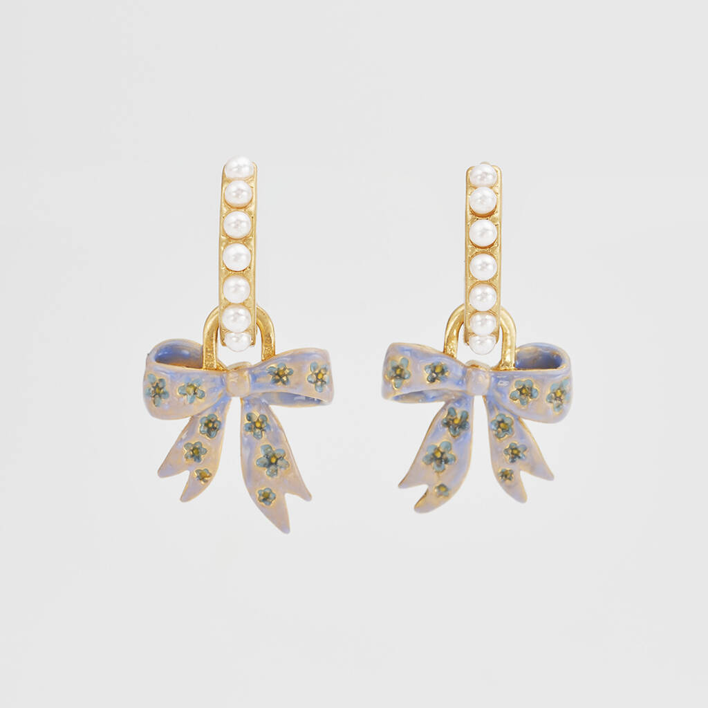 Gold Forget Me Not Bow Huggie Earrings