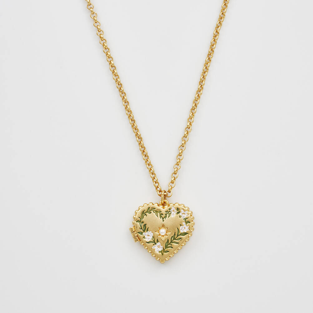Gold Jasmine Heart Locket Necklace