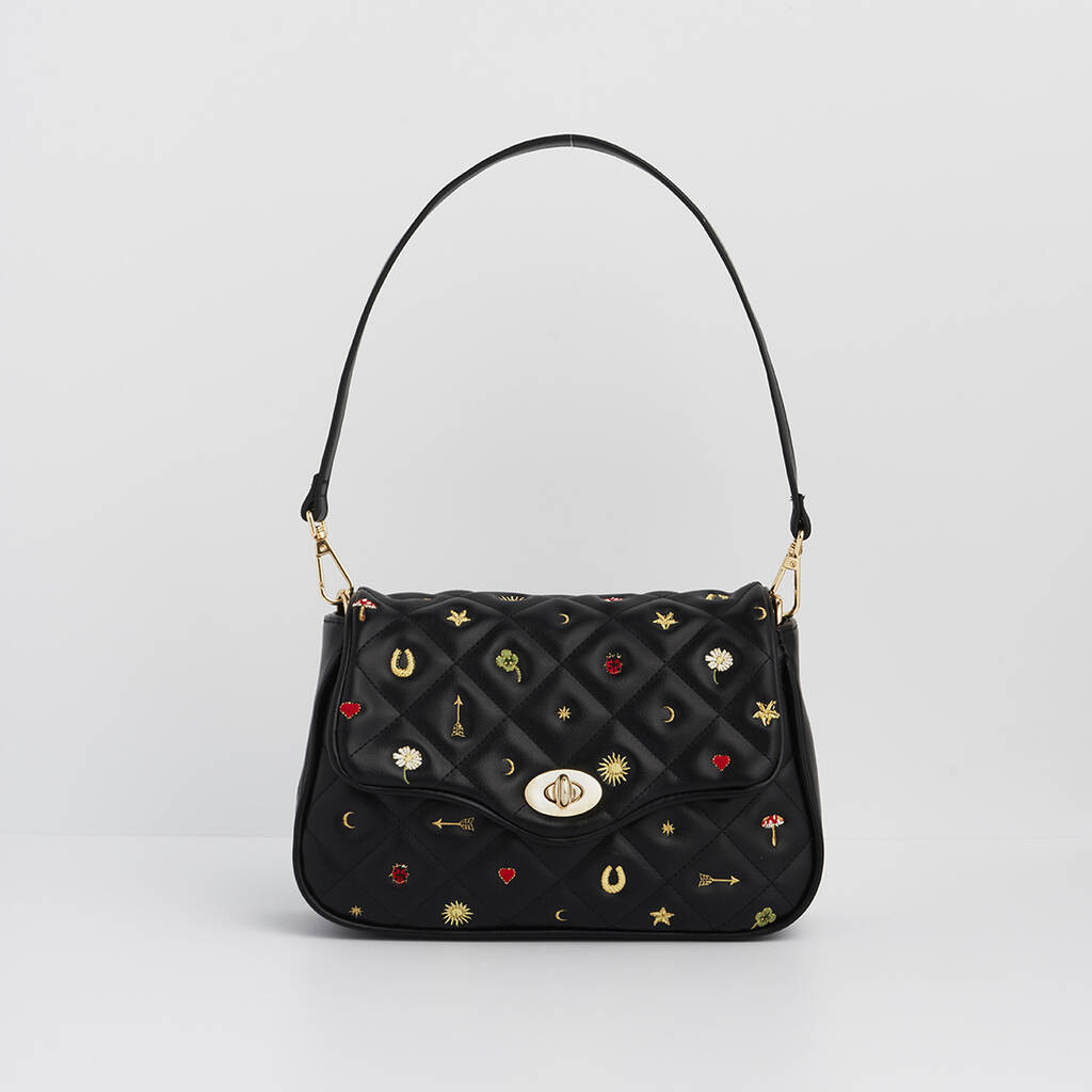 Mary Motif Quilted Crossbody Clutch