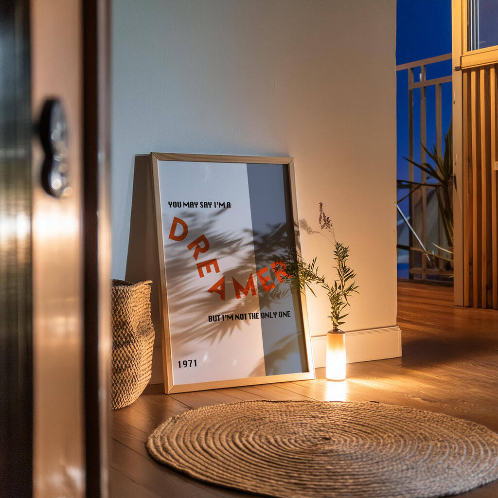 For the Beatles or Lennon obsessed.This playful print was inspired by the iconic song, Imagine.