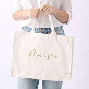 Personalised Square Canvas Large Tote Beach Shoulder Bag