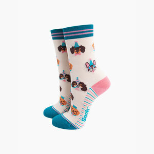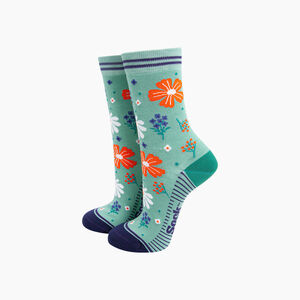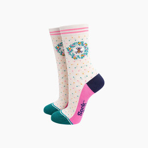 Embroidered Scallop Shell Combed Cotton Socks In Blue