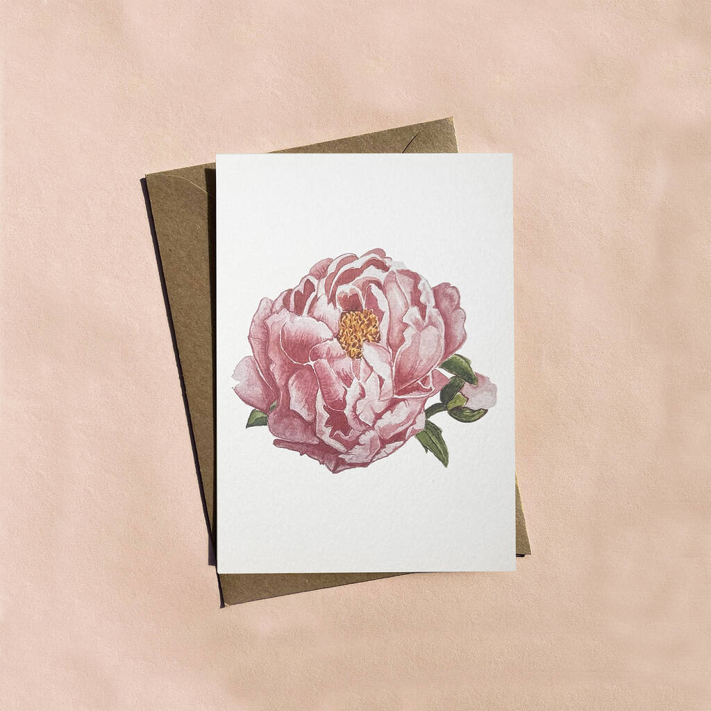 Pink Peony Hand Painted Floral Card