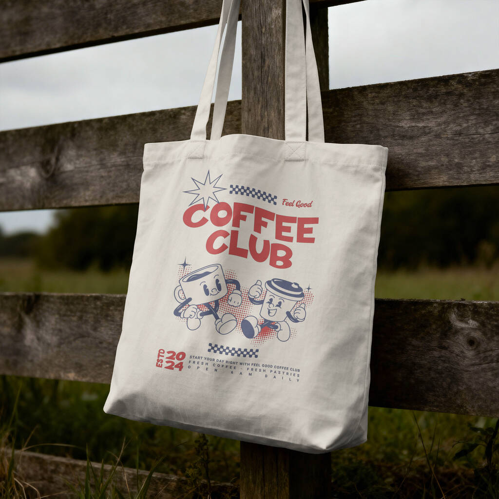 Coffee Club Tote Bag, Cotton Shoulder Bag