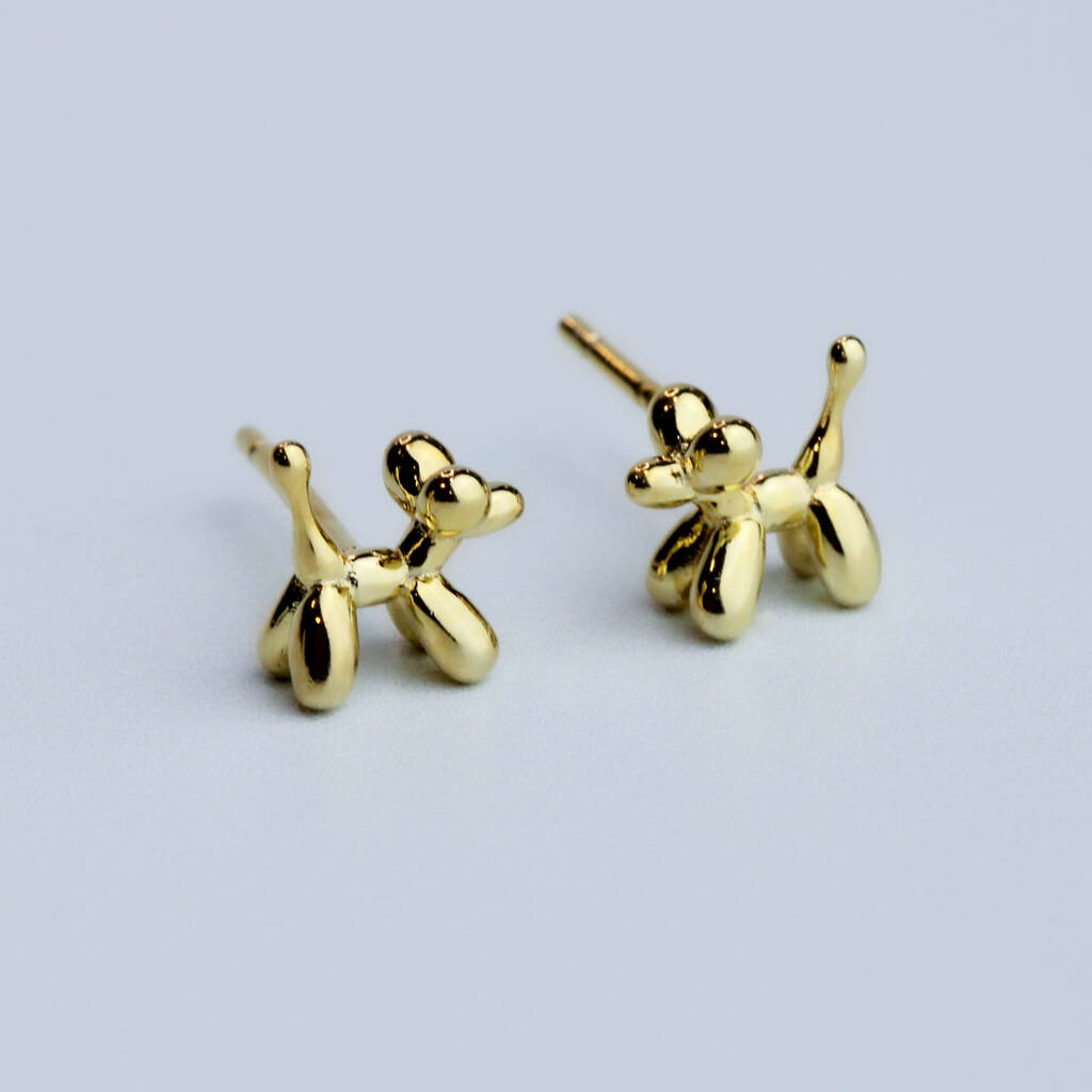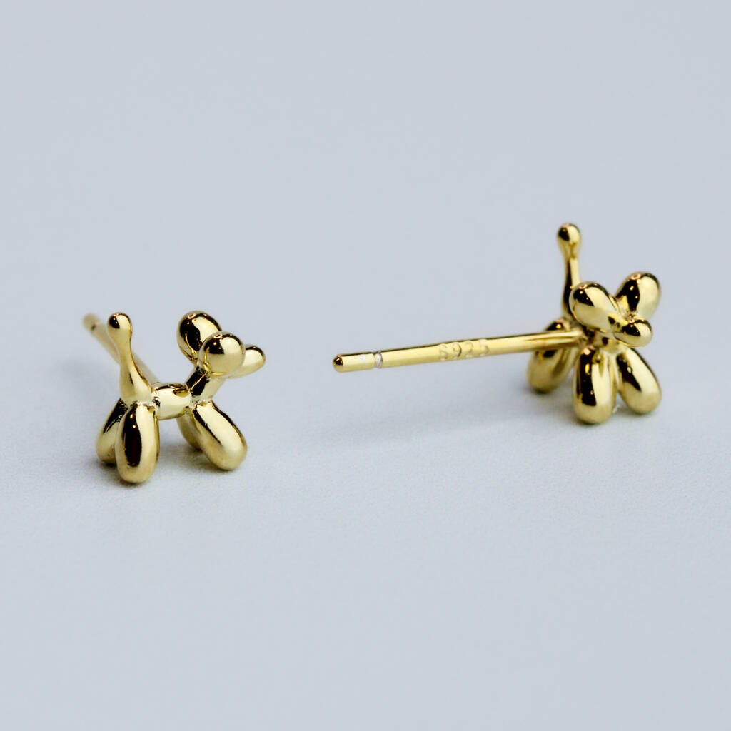 These minimalist earrings are made of quality sterling silver and come with butterfly backs. They feature a simple, tiny balloon dog design.