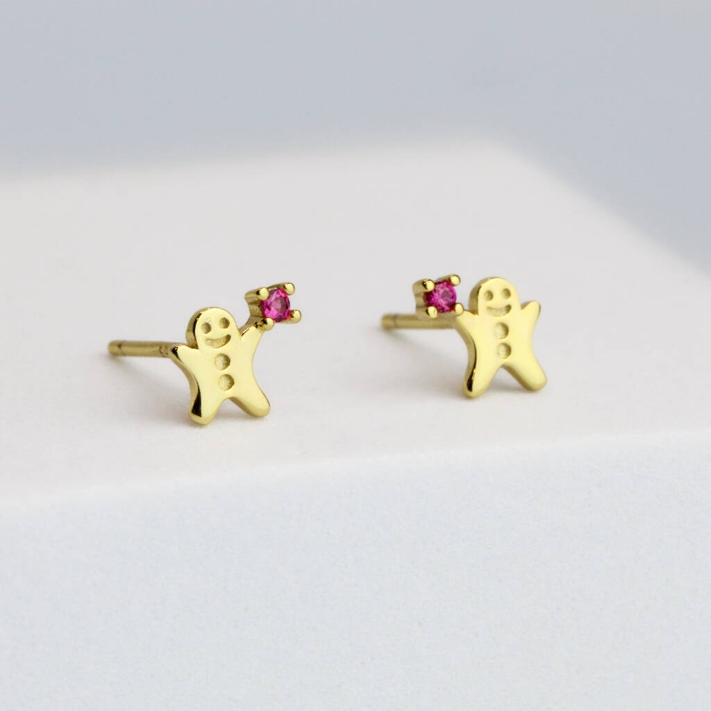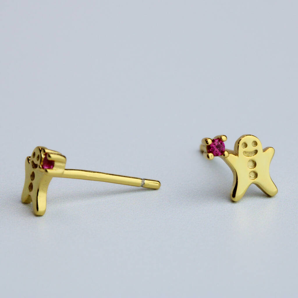 Gold Colour Sterling Silver Gingerbread Man Stud Earrings